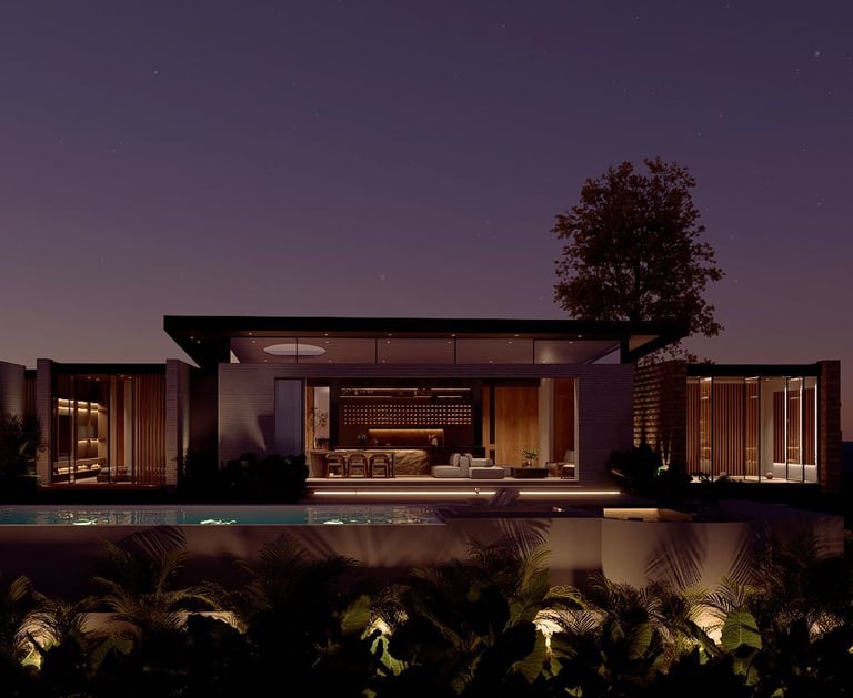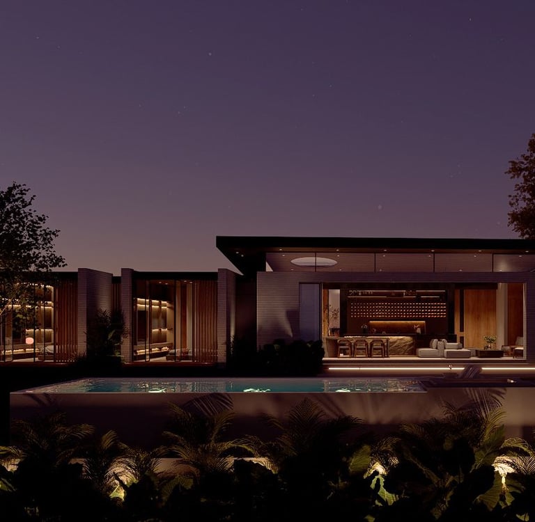Un refugio inmerso en su entorno que ofrece una experiencia de vida contemplativa, elevada y protegida. Cada línea fluye con intención, curvas suaves, materiales nobles y vegetación envolvente construyen una experiencia sensorial única, pensado para elevar el estilo de vida, sin perder conexión con lo esencial.